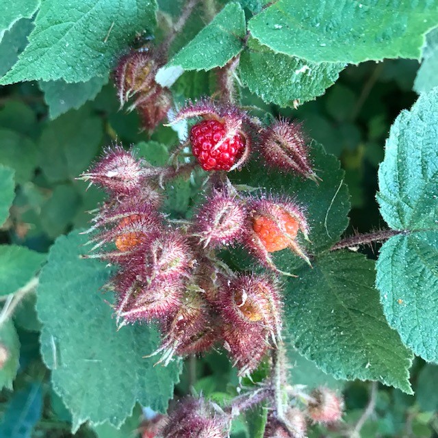 Thursday, July 7, 2022 – I’ve been waiting patiently, and, lo’ and behold, the first wild raspberry of the season popped out today, with a promise of culinary abundance to come.