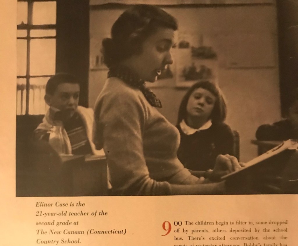 In 1951, at the age of 21, she was profiled by Glamour Magazine, in an article titled “diary of an elementary school teacher.” It was the first in a series of articles about women’s careers.