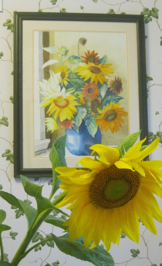 Every morning when I eat breakfast, I look at a favorite watercolor rendering of sunflowers on the wall, across from where I sit. It was painted by my Mom. She was gifted. She loved flowers, she loved art, and she loved to create…