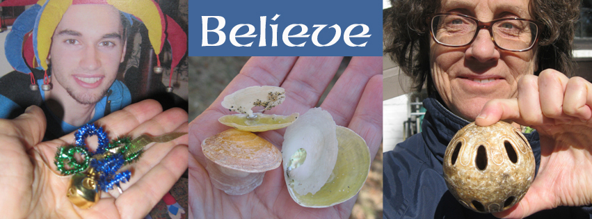 Then I realized that in my hand I held a clue to answer my question. It was as if I were playing a game of charades with some unseen team mate. Sounds like… “Jingle Bells…” Jingle Shells!