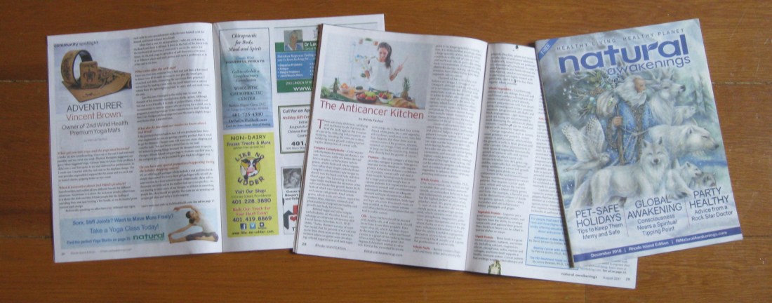“…thinking I doing well with respect to grieving, I resumed writing monthly articles for Natural Awakenings magazine, beginning with The Anticancer Kitchen, sharing some of what you and I had learned together – what to eat, what to avoid. Writing about foods that prevent and fight against cancer came easily. It was a practical piece of writing, which I hoped readers would find it helpful.